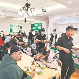 走进怡鹿·永辉社区食堂,干净的餐桌,丰盛的饭菜,家的味道油然而生。临近中午12点,白鹿场社区的老年人、附近的上班族和商铺店主陆续赶来,就餐高峰期人流量达近百人。“自从有了这个社区食堂,我们的生活便利多了!”在白鹿镇开纪念品店的店主王顺贵开心地说,“以前临到饭点就发愁吃啥,自己店里地方小,也做不过来,天天在外面吃也遭不住,现在好了,出门走几步就可以吃到物廉价美的饭菜。”