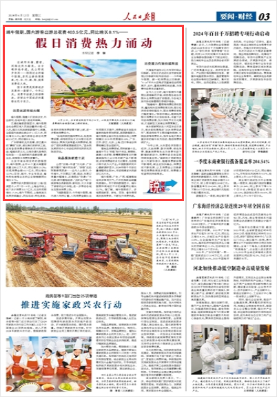 “随着端午、暑期等消费旺季的到来,叠加相关促消费政策支持,假日经济将保持较强活力,服务消费将有较大幅度增长。”陈丽芬建议,继续拓展假日消费多元化供给体系,丰富下沉市场消费场景,加大传统节日文化建设,打造新型文旅商业消费聚集区。