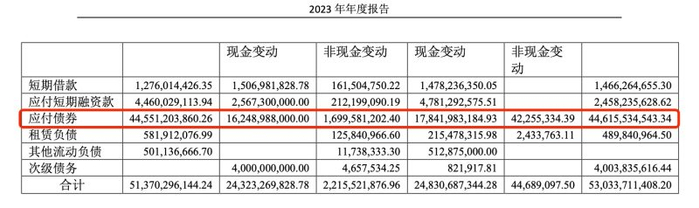 Wind数据统计,目前其发债募资数额达到931.16亿元。截至2023年年末,天风证券应付债券账面金额为446.16亿元,占当期总资产的比例高达44.82%,比例在43家上市券商中最高,且高出行业均值近两倍。截至今年一季度末,其应付债券达到438.55亿元。