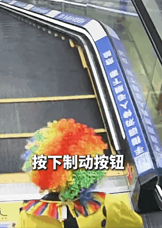在扶梯底端紧急按停的姑娘