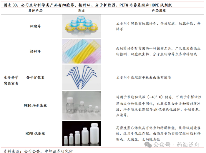 3.5 生命科学实验领域公司主要产品为细胞筛、接种环、分子扩散器、PETG培养基瓶和HDPE试剂瓶