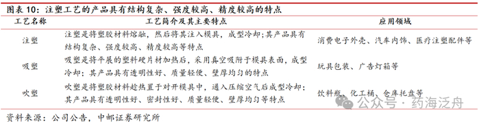 注塑工艺的产品相对具有结构复杂、强度较高、精度较高等优势。精密塑料件的制造综合运用了计算机技术、高分子材料技术、精密制造与测量技术等现代科学技术,将塑胶材料加热为半固态后,可通过注塑、吸塑、吹塑等不同成型工艺加工成特定尺寸的产品,其中使用注塑工艺的产品具有结构复杂、强度较高、精度较高等优势。