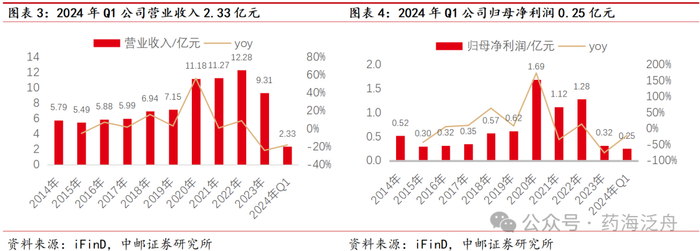 2023年公司业绩相对承压,公司后续有望迎来业绩拐点。公司2023年营业收入9.31亿元,同比下降24.18%,我们认为系2023年核酸检测需求量下降,上海力因相关产品销售收入较上年同期大幅度下滑所致。公司归母净利润为0.32亿元,同比下降75.31%。2024年Q1公司营业收入2.33亿元,同比下降18.11%,环比增加21.45%。归母净利润为0.25亿,同比下降21.01%,环比增加232.23%。