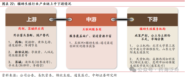 公司处于辅助生殖产业链上游,为下游客户提供相关器械。在辅助生殖产业链中,下游一般为针对患者的辅助生殖服务机构,相对属于严肃医疗,目前以公立医疗机构为主,受政策严格控制,相对行业需求来说辅助生殖服务机构仍存在供给不足和市场分散等问题;中游一般为互联网服务平台,其主要是通过互联网服务商来实现精准获客;上游则是辅助生殖相关的药械供应商,可分为药物、检验试剂和器械的供应商,目前主要是外企寡头垄断为主。