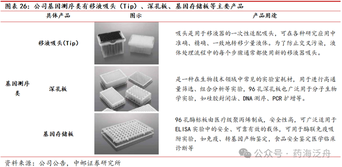 3.4 基因测序领域公司主要产品为移液吸头(Tip)、深孔板和基因存储板