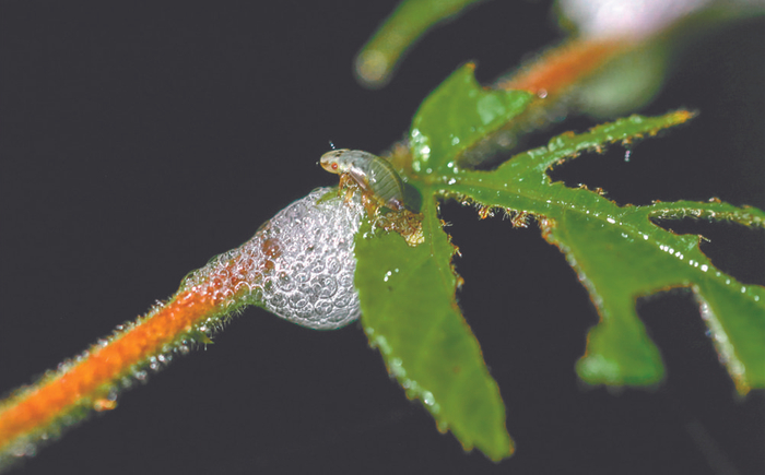 沫蝉幼虫 沫蝉幼虫。沫蝉妈妈在生小宝宝的时候,会在植物的茎叶上留下很多类似人的唾沫的东西,把幼虫包裹住。人们看到唾沫的第一反应往往是很恶心,离得远远的。这样一来,沫蝉宝宝就安全了。 技能:跳跃能力极强,跳的高度可以达到它身长的200多倍。