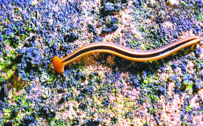 笄蛭涡虫 笄蛭涡虫,因头部类似炒菜的锅铲,俗称锅铲头。它还有个绰号叫蚯蚓杀手,多生活在阴暗潮湿的地方,如砖石块下、土壤中,以土壤中的小动物和有机物为食,碰到蚯蚓后缠杀,再分泌消化液。 技能:再生能力极强,有实验把一条涡虫分成两百多段,居然长出了两百多个新个体出来。