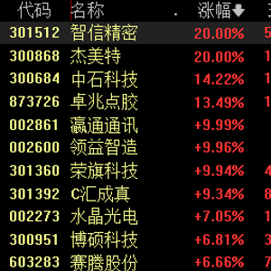 6月12日,AH股苹果概念股齐涨。截至发稿,智信精密、杰美特涨超20%,中石科技涨超14%,瀛通通讯、领益智造涨停,荣旗科技、水晶光电等大涨。港股方面,富智康集团涨超14%、高伟电子涨超7%、比亚迪电子涨近5%。