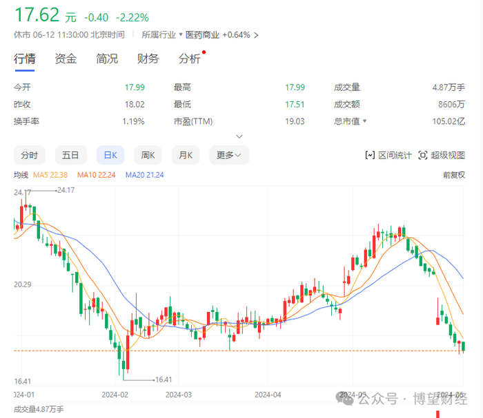 一心堂(002727)被国家医保局监管事件仍在发酵。资本市场上,继6月3日开盘大跌、触及跌停后,截至6月12日午间,一心堂报收于17.62元/股。而其市值则相较3日的113亿元,缩水至109亿。距离此前高点22.67元/股,已经下跌23%。