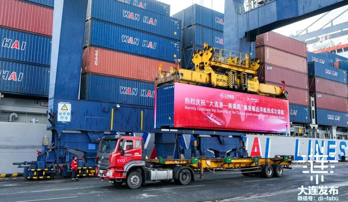 ‘大连港—南美西’集装箱远洋航线填补了大连港至南美区域直航服务的空白,进一步巩固了辽港东北冷链分拨中心地位;‘大连—印度’快航航线为东北腹地与南亚区域经贸往来架起便捷、高效、低成本的海上物流新通道。