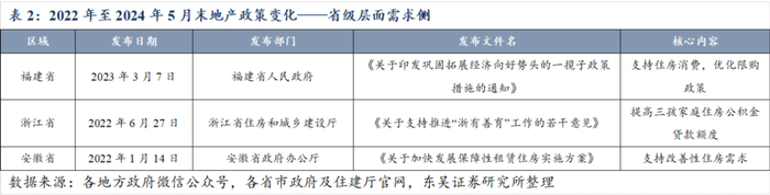 2023年底至2024年上半年,政策全面放松,尤其在国家层面和一线城市层面,放宽政策力度显著。例如,国家层面于2024年5月推出放开或取消住房限购、下调首付比例及贷款利率的“组合拳”政策,搭配存量房“以旧换新”和“存量收储”政策,从供需两端解绑地产市场;此外,上海市于2024年5月发布通知,调整住房限购政策,取消离异购房合并计算住房套数的规定,优化多子女家庭购房政策等。同时,央行下调个人住房公积金贷款利率,进一步降低购房成本。