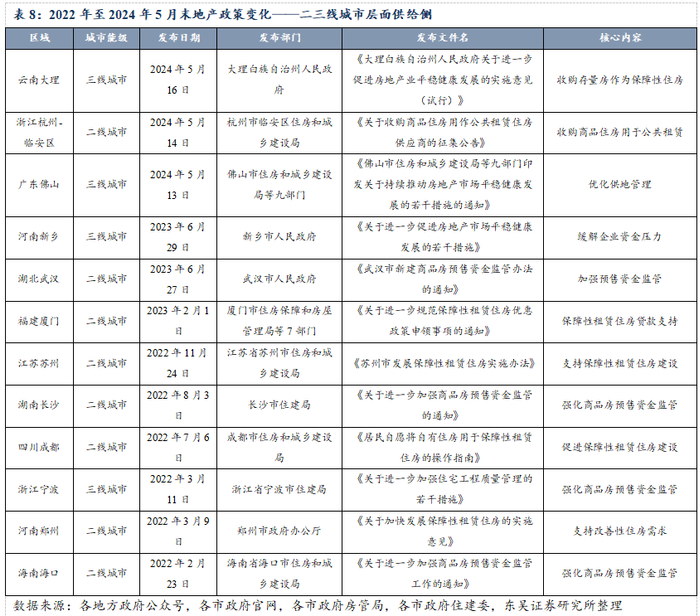 2022年至2024年5月末期间,二三线城市各地发力,通过土地管理、住房供应以及金融支持等方面的综合施策,进一步优化了住房市场的供给结构,提升了市场的整体活力和稳定性。这些政策的实施,不仅增强了房地产企业的信心,也为居民提供了更多的住房选择和保障,促进了地方经济的发展。