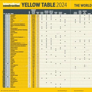 Yellow Table 2024榜单中,前10名分别是卡特彼勒(16.8%)、小松(10.4%)、约翰迪尔(6.1%)、徐工XCMG(5.3%)、利勃海尔(4.2%)、三一重工(4.2%)、沃尔沃建筑设备(4.1%)、日立建机(3.7%)、杰西博(3.3%)、斗山山猫(3.1%)。