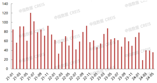图:2021年-2024年5月北京商品住月度成交情况