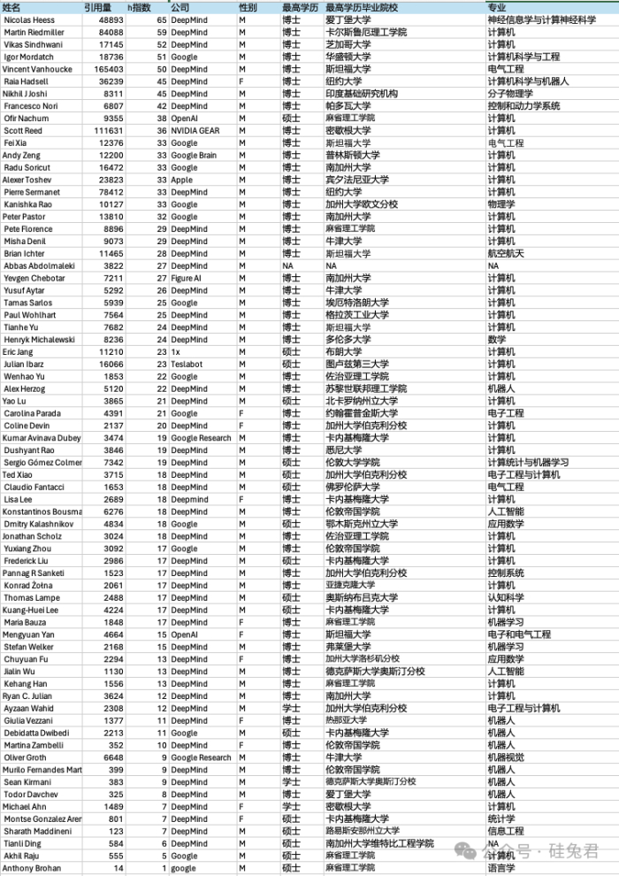硅兔尝试梳理了美国大公司,两个AI黄浦军校——谷歌和英伟达的具身智能人才图谱以及在其中的华裔大佬,或许能为希望在其中进行创业或投资的读者提供按图索骥的参考。