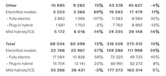 这样的新能源销量占比,显然与沃尔沃的电动化转型目标相差甚远。此前沃尔沃公布的目标为:到2025年实现纯电动车型销量占比达50%,到2030年实现100%全面电动化。但如今,即便算上插电混动车型,沃尔沃的新能源车型销量占比也没到10%。