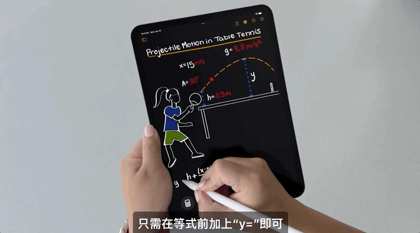 比如你用Apple Pencil写一个数学表达式,写下等号之后,计算器会自动算出结果。如果修改表达式,结果也会实时更新。