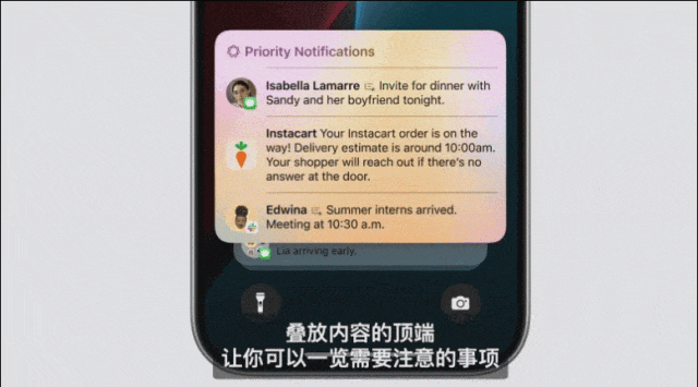 开启这项功能后,系统可根据通知内容的重要性进行排序,最重要的信息,比如,写有用户航班登机牌的邮件会被放在最上方展示。