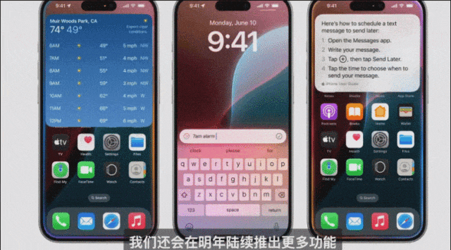 未来,苹果表示,明年将会为Siri推出更多新功能,包括让Siri了解显示屏内容的屏幕感知功能,让Siri代表用户在应用程序中采取行动。