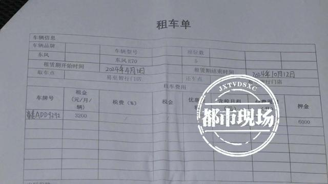 《都市现场》记者从付先生提供的租车单上看到,车辆品牌为东风,租赁期开始时间为2024年4月12日,租赁期结束时间为2024年10月12月,租金为3200元每月,押金6000元。付先生说,他的儿子性格内向,一直没有找到合适工作,这才在一位好友介绍下,签约了“易至智行”做网约车司机,本想赚点日常开销,不想却遇上了麻烦。