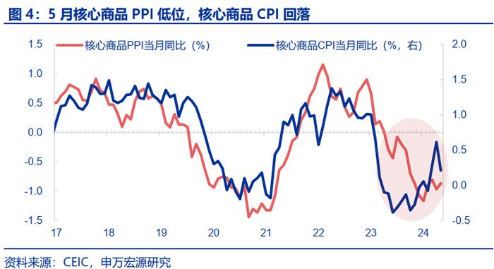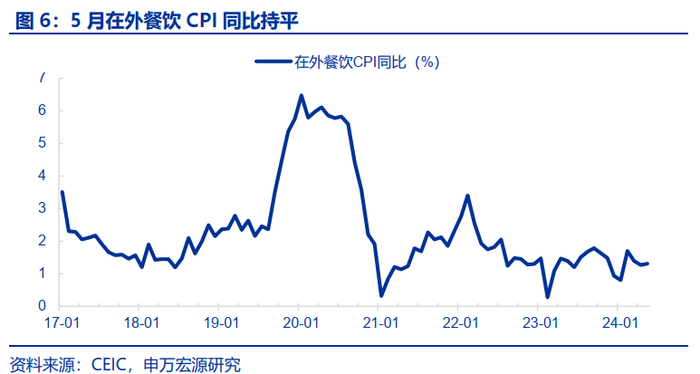 但相较而言,食品CPI回升、核心服务(非房租)CPI维持季节性,是5月CPI值得关注的亮点。
