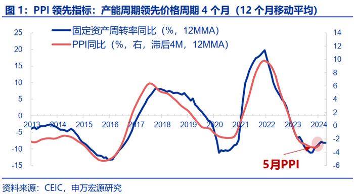 而餐饮CPI方面,5月同比持平1.3%,整体变化不大。展望后续,由于24Q1生猪存栏进一步下滑,且出栏目前增速还未下滑至匹配存栏收缩的水平,预计6月之后生猪供给进一步收缩,而6-9月也是往年猪价季节性上涨的阶段,关注后续猪价上涨对于CPI上行的支撑。