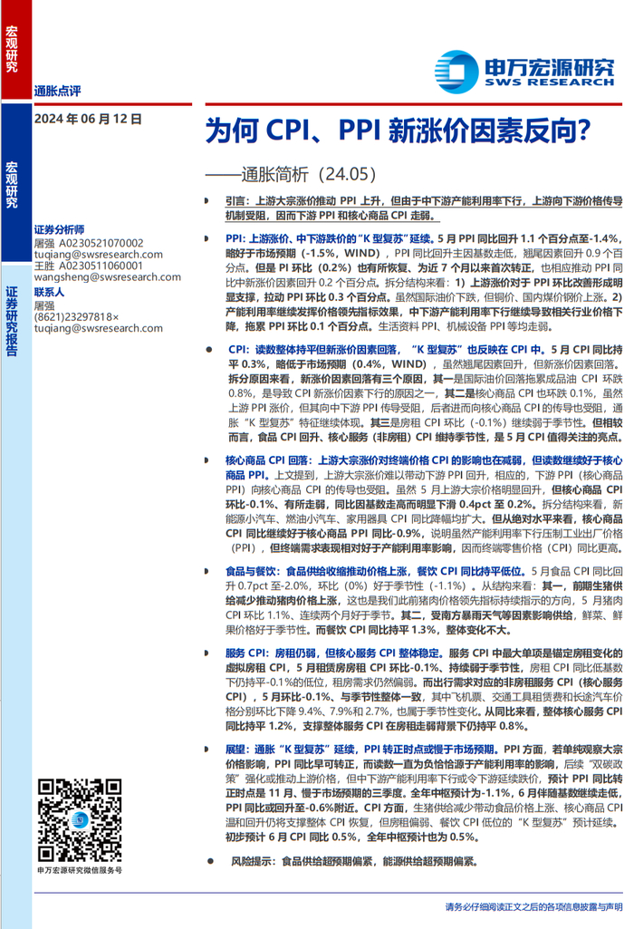 《为何CPI、PPI新涨价因素反向?——通胀简析(24.05)》