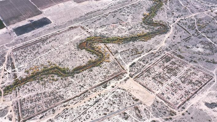 航拍马桥故城(摄于5月9日)。坐落在六师一○六团的马桥故城是兵团级文物保护单位,近年来,该团大力开发马桥故城,打造特色马桥文化小镇,让历史文化遗产焕发出新的光彩。 兵团日报常驻记者 李华北 摄