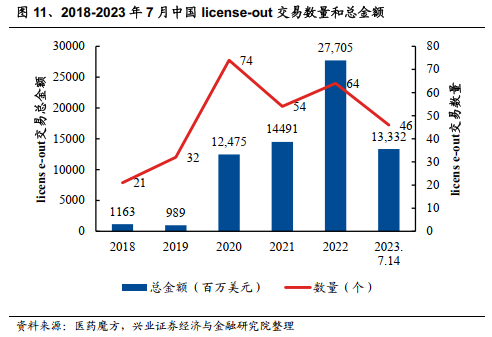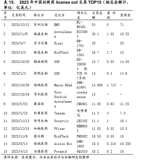 根据医药魔方数据库的统计,截至2023年12月18日,中国在2023年共完成了近70项创新药的海外授权交易(license-out),已公开的交易总额超过了350亿美元。2024中国医药出海交易有望实现爆发式增长。