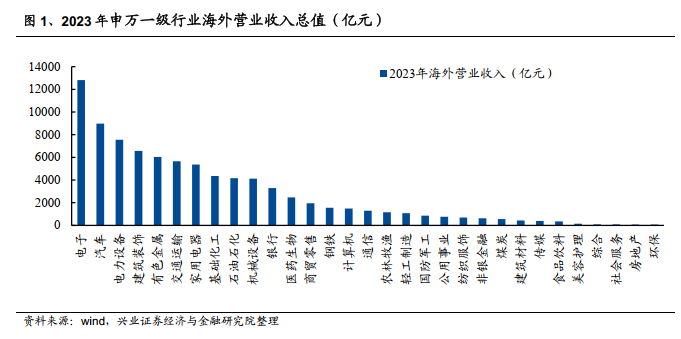 A股上市企业海外营业收入分行业概况