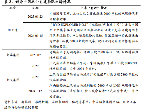 我国汽车出口运输方式有远洋海运、铁路运输、公路运输,运输媒介主要有滚装船、集装箱船、多用途纸浆船、中欧班列和货车等。其中,远洋海运的运量居首,滚装船则是其最主要运输媒介。对于本土生产海外销售的汽车企业而言,随着我国汽车出口规模的不断提升,车企的远洋运输需求也在持续增强。为进一步增强汽车出口能力,近年来,比亚迪、奇瑞、上汽等中国车企纷纷组建船队。