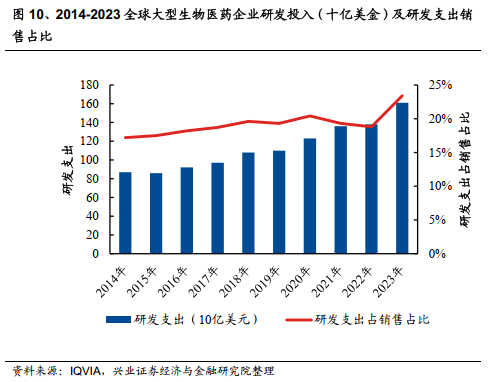 2023年全球大型制药公司在研究和开发上的总支出超过了1610亿美元,自2018年以来增加了近50%。