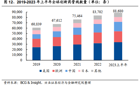 BCG & Insight数据显示,随着近年来欧洲日本创新药管线增速放缓,中国和美国在全球创新药领域的重要性进一步提升。