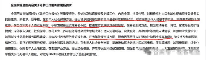 早在今年3月5日,国务院在政府工作报告中提出了几项关键养老政策:全面推进个人养老金制度,城乡居民基础养老金月最低标准提高20元,以及继续提高退休人员的基本养老金【官方文件】