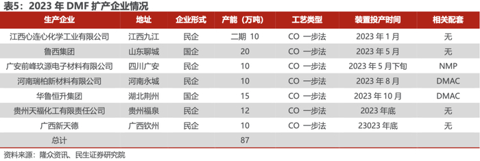 2.2.3 DMF:公司仍稳居行业产能规模首位