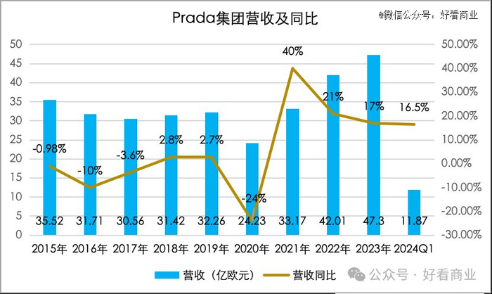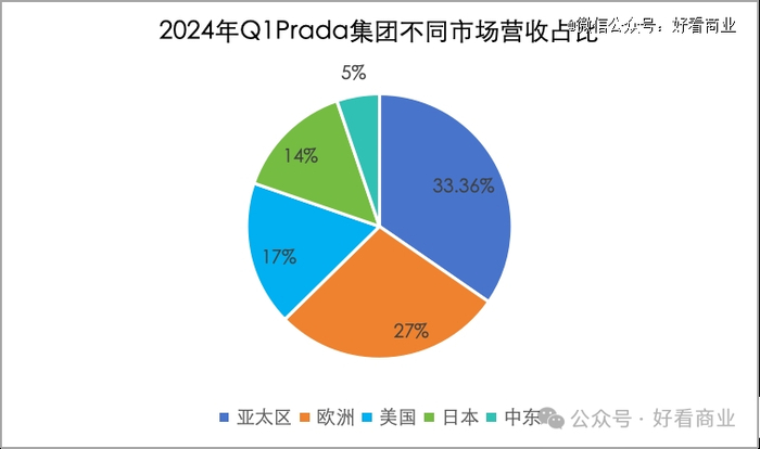 到2024年Q1,整个亚太区依然是Prada集团的收入顶梁柱,营收占比*,达33.36%。