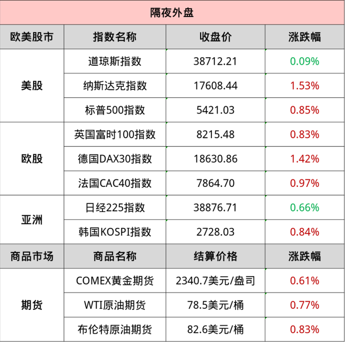 隔夜外盘