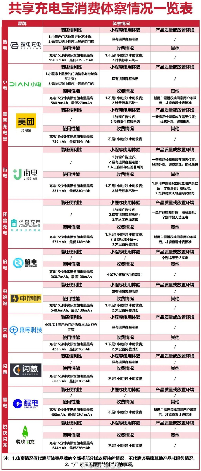涉及品牌:“街电”“怪兽充电”“闪葱”“电饱饱”等