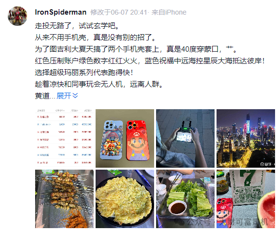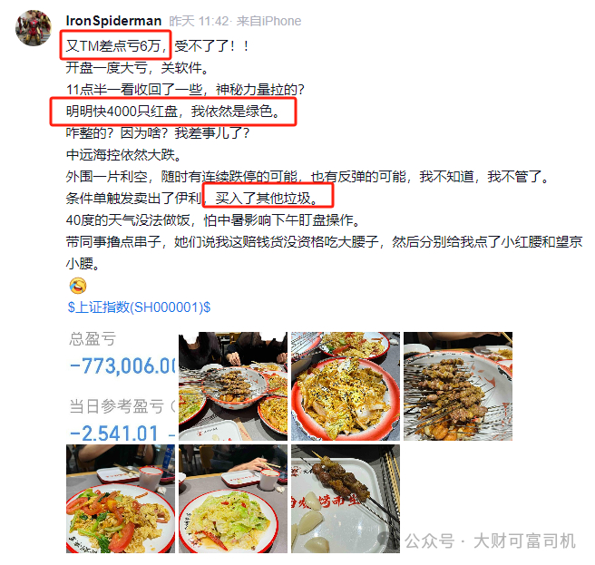 好在“IronSpiderman”本人心态还算平称,虽然巨亏200万,股市只能吃面,但他还经常去品尝各种美食。