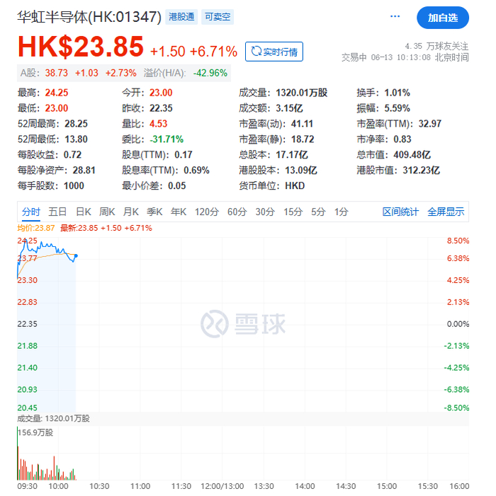 港股市场上,华虹半导体盘中大涨超8%。