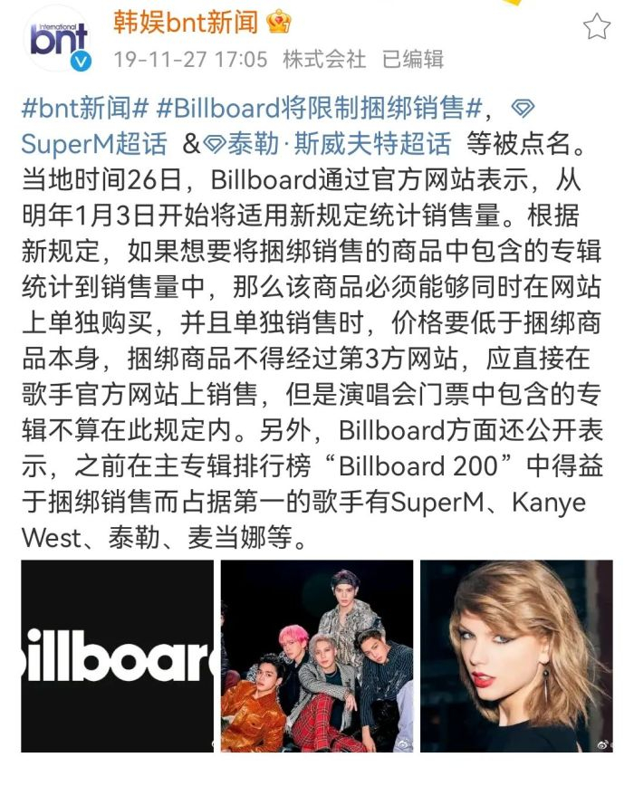 尽管这种做法颇为急功求成,却为当时尚未拥有出色闯美案例的SM娱乐打上一剂强心针,以至于SuperM后续以“捆绑销售”的方式持续影响Billboard榜单,最终也成为导致Billboard不得不进行榜单改版的因素之一。