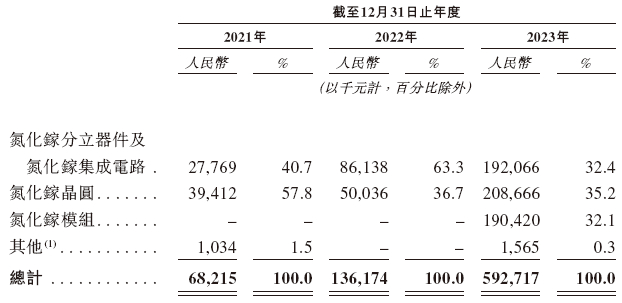 英诺赛科的收入主要来自氮化镓分立器件及氮化镓集成电路、氮化镓晶圆及氮化镓模块的销售。