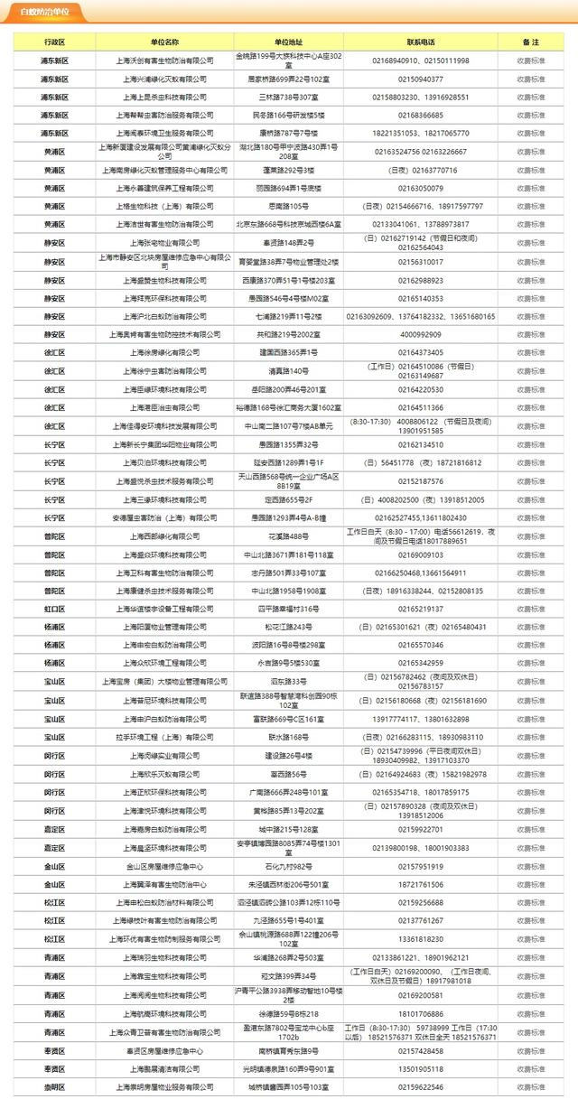 目前,本市16个行政区都有白蚁防治企业,市民可以根据实际情况,就近选择白蚁防治企业进行上门灭治。如发现白蚁防治企业有未按公示的收费标准乱收费的,可拨打962121热线进行投诉。