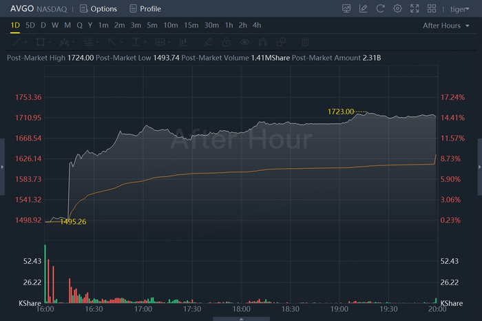 财报发布后,博通股价暴涨14.57%,市值增加1009亿美元,总市值达到7933亿,逼近8000亿美元大关!