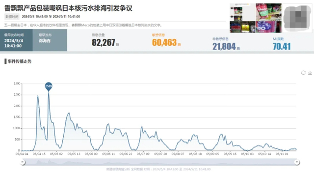 五月初有游客晒出香飘飘旗下MECO果汁茶在日本京和商店大久保店的产品上印有嘲讽核污水排海的标语。香飘飘的工作人员的回应媒体称是“疑似员工个人行为”。