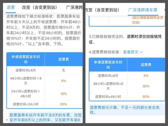 高铁退票规则与广深港跨境车票退票规则对比