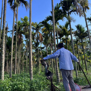 符西强回想起过去的日子,那些与槟榔树共度的岁月仿佛就在昨天。他亲手种下的每一株槟榔苗,都承载着他的等待和希望。但如今,他只能眼睁睁地看着它们一株株倒下却措手无策。