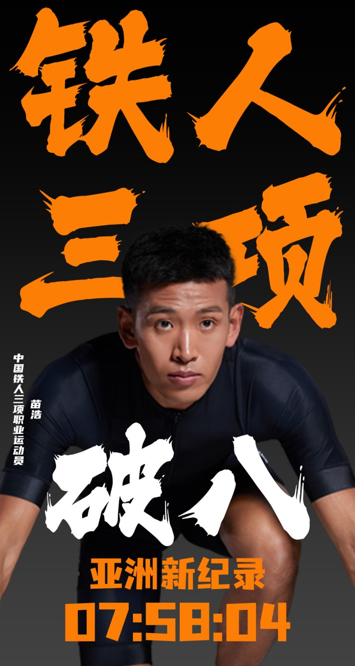 与冲线时的狼狈相比,结果足够耀眼——在全程226公里的大铁比赛中,苗浩以7小时58分04秒夺得全场季军,成为首位打开8小时大关的亚洲人,也将个人大铁最好成绩一举提高了20分钟。