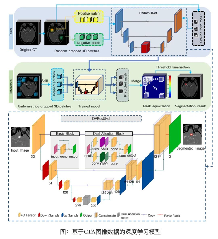 南京大学医学院附属金陵医院(东部战区总医院)张龙江教授团队联合徐州医科大学胡春峰教授团队、香港大学俞益洲教授团队和北京深睿人工智能实验室等多家单位合作开展的用于中国CT血管成像颅内动脉瘤检测的深度学习模型研究。