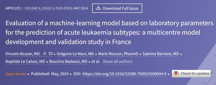 Vincent Alcazer团队基于来自六所独立法国大学医院被诊断患有AML、APL或 ALL的1410名18岁或以上的患者。